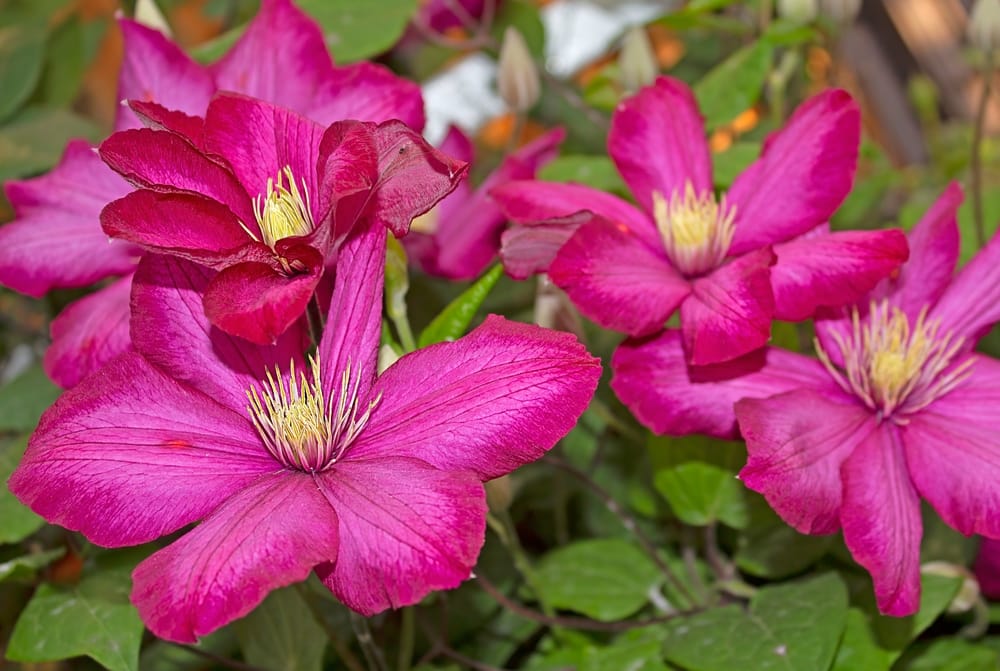 Clematis benefit from regular fertilization with a balanced, all-purpose fertilizer or low-nitrogen fertilizer during the growing season. Pruning requirements vary by variety, but in general, dead or weak stems should be removed to encourage new growth. Supporting the vines with trellises, fences, or arbors helps them climb and showcase their stunning flowers. Additionally, keeping an eye out for pests like aphids and slugs will help maintain plant health. With the right care, clematis will reward gardeners with a beautiful display of vibrant, long-lasting blooms season after season.