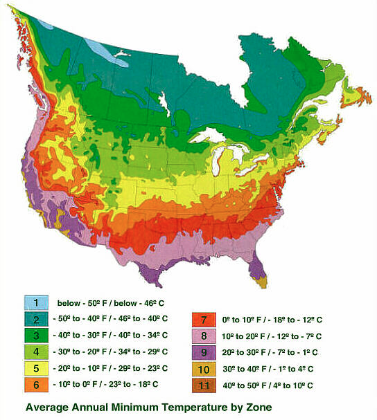 Refer to our Average Annual Minimum Temperature by Zone Map